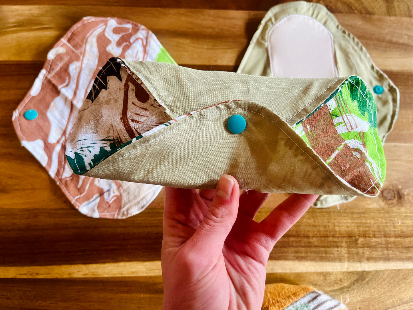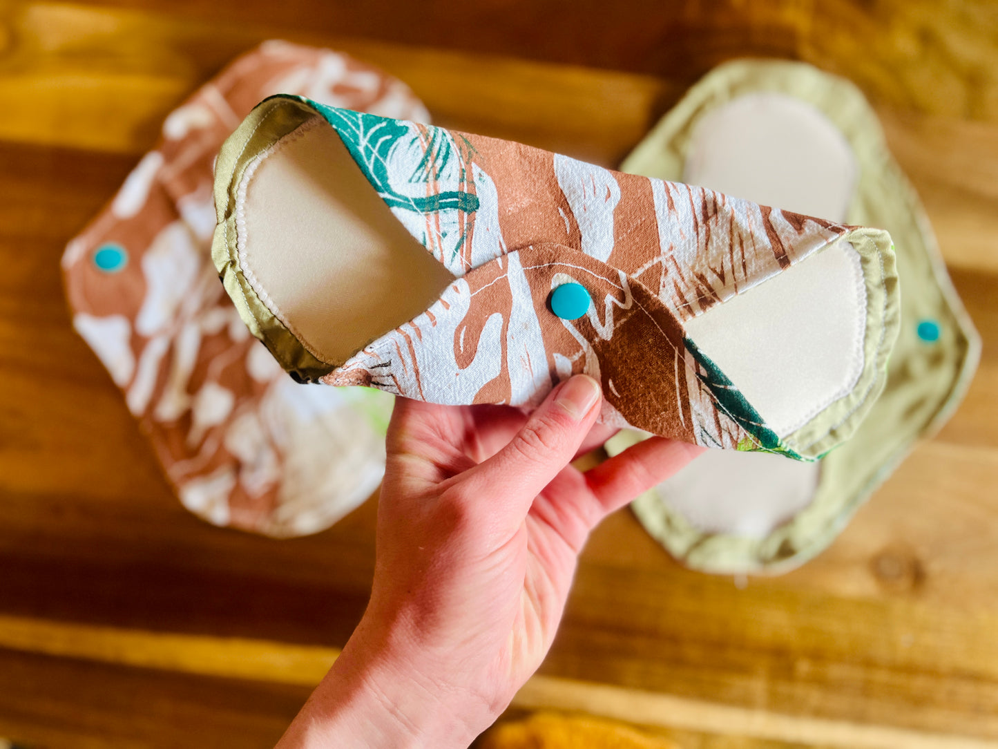 - Place the lunar love pad in your underwear with the absorbancy fabric facing up. Flip the wings with the snaps on the other side of your undies to hold in place, this is easiest while wearing your undies.