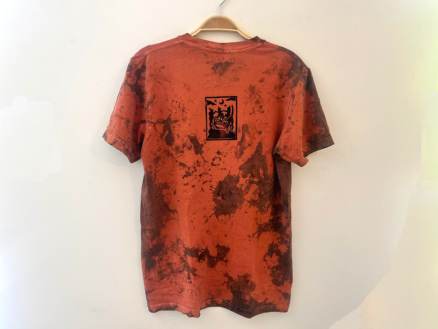 Printed on a cozy comfort colors shirt with a hand done tie dye. The shirts are 100% cotton. For my linocut Ts, I recommend cold wash and hang drying. The shirts fit true to size. Coloring may vary because of the dying process.