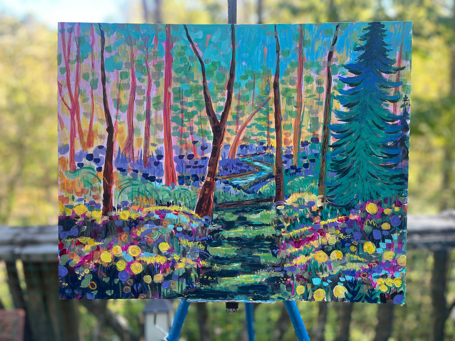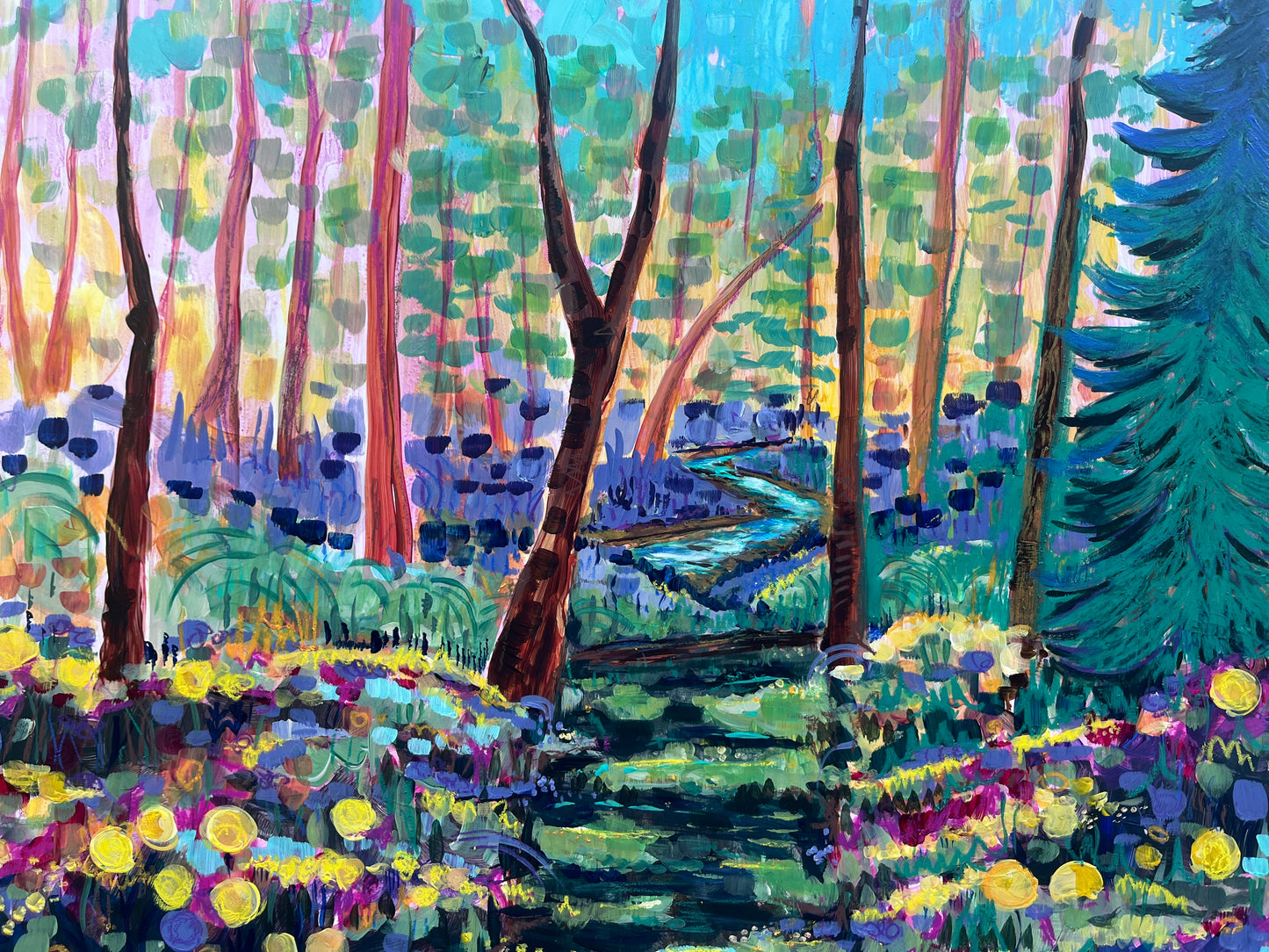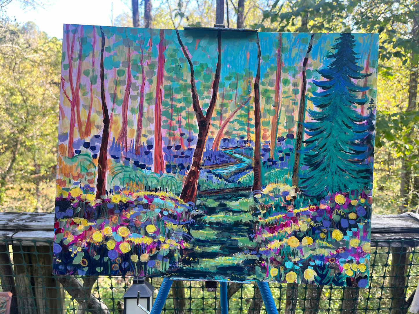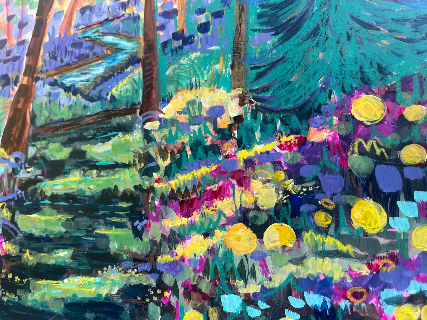 Original multi media piece with acrylics and pastels on clapboard by Erika Busse and Matthew Decker. 16x20”
