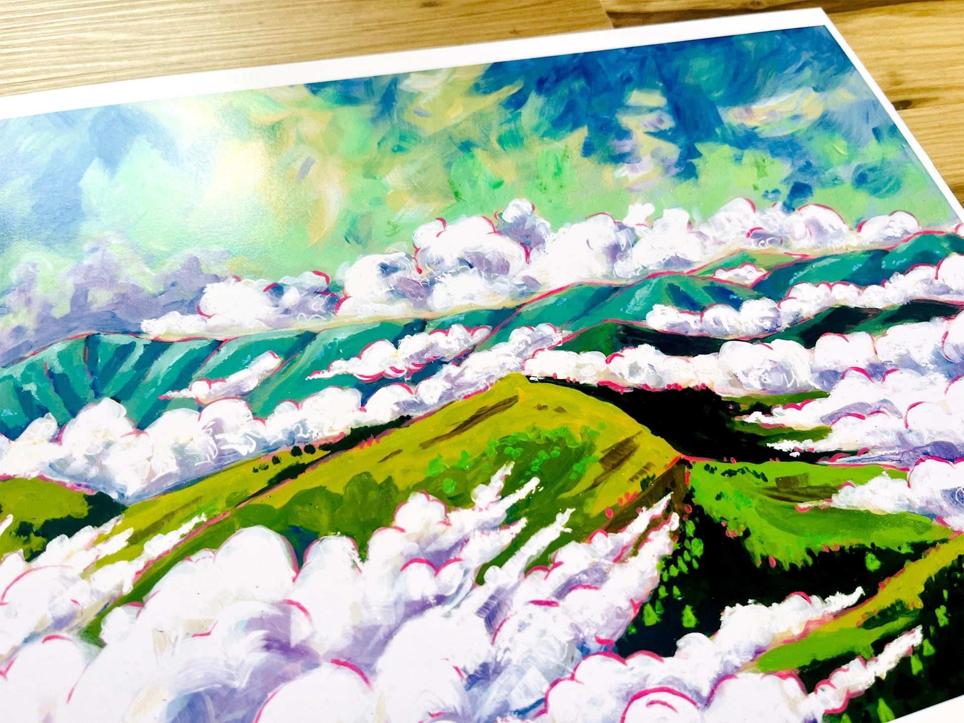 Waking up to the clouds parting like the sea over the mountains, creating islands of trees, is a heaven on earth like experience. In the great smokey mountains, the rolling mountains and altitude create this effect. This is a picture I took while camping up on the Blue Ridge Parkway. This artwork is beautiful and hand crafted to help create a calming atmosphere in your space. This is a fine art print of the original painting.
