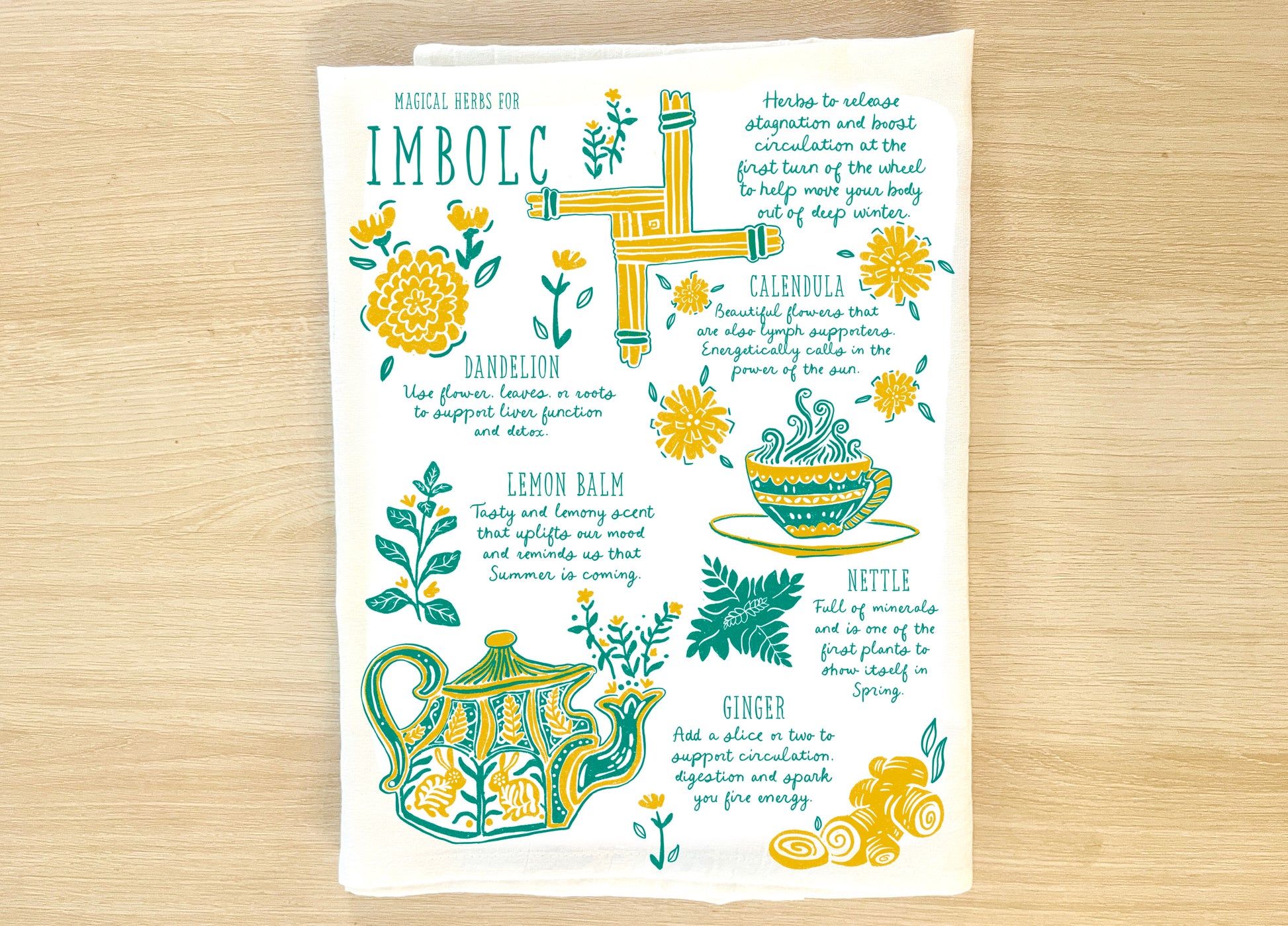 Imbolc Herbs Tea Towel
