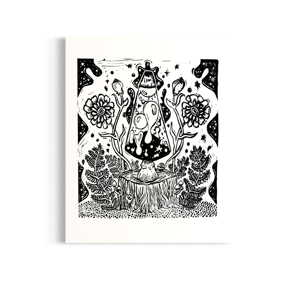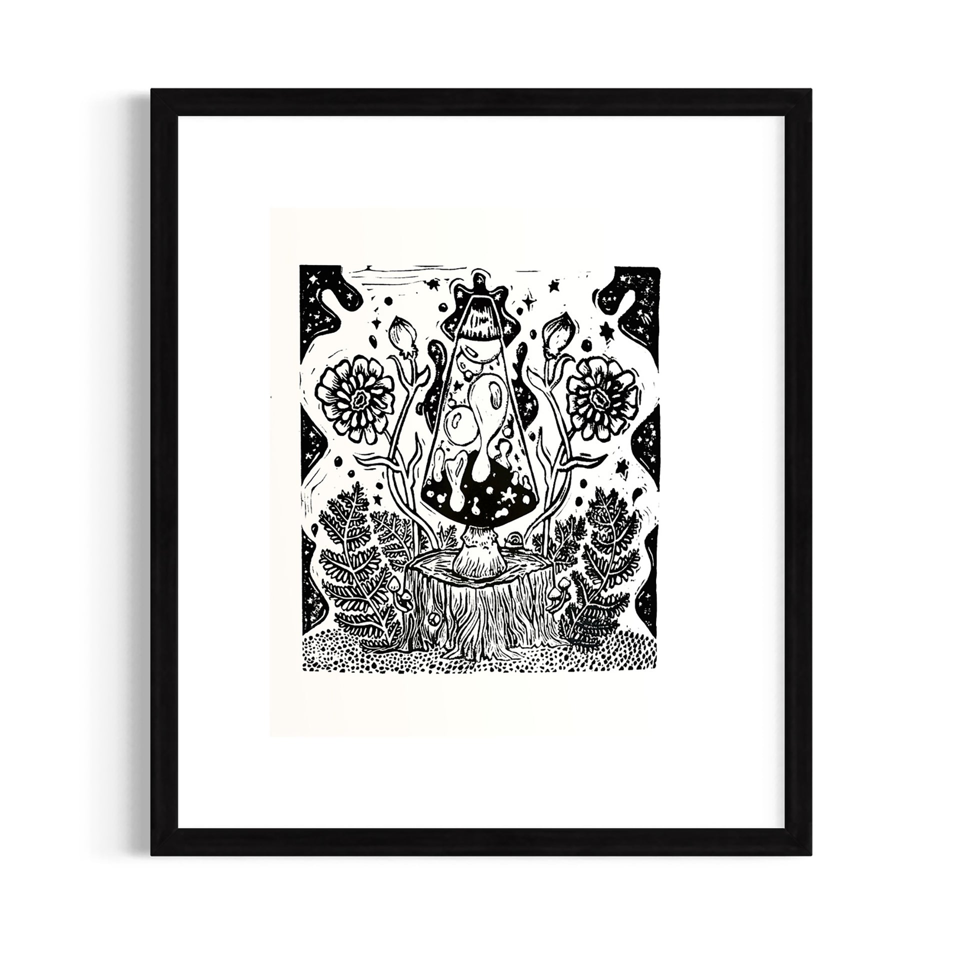 Dream scene has a surreal quality mixed with my line work illustration and linocut print, mirroring how dreams are so ephemeral yet real feeling. This scene came to me in a dream and I felt it needed to become art. I hope you enjoy and see your own magick in it.