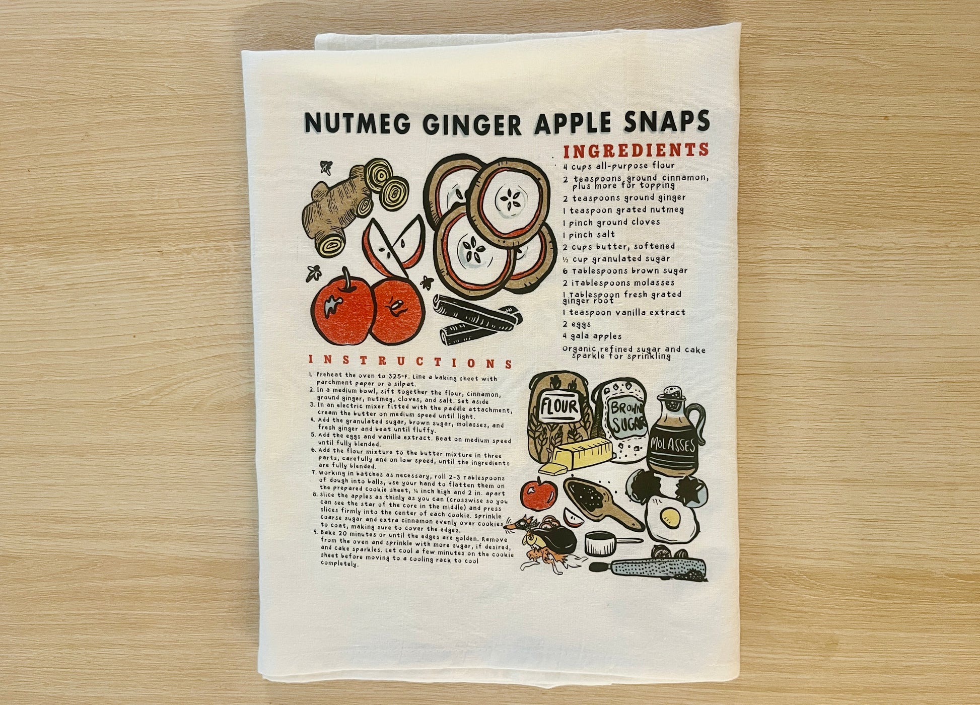 Nutmeg Ginger Apple Snaps Recipe Tea Towel