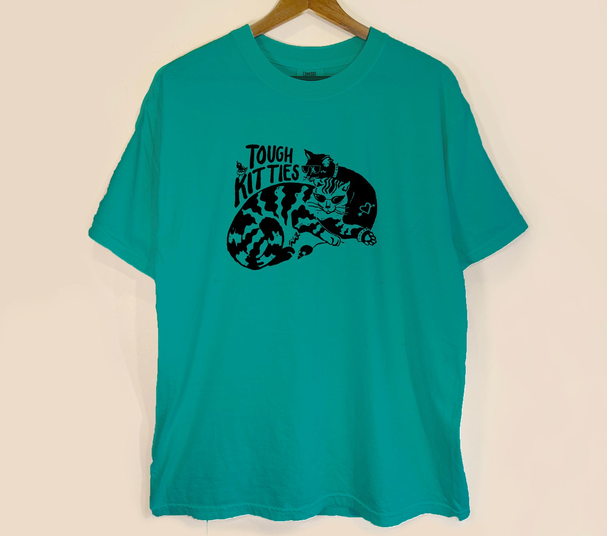 This is a hilarious and cute hand printed tshirt, featuring my original illustration of the two toughest kitties I know. Models - Ty and Cubby