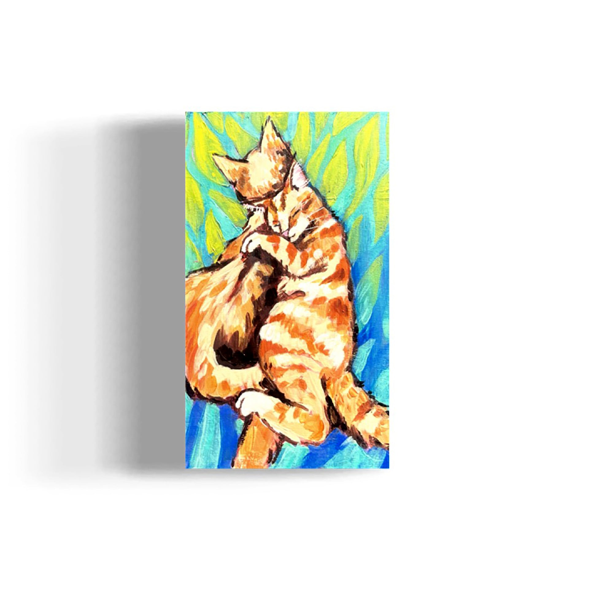 An original acrylic painting of 2 cute and snuggly tabbies! So precious and only 5x7” with a hanging wire installed on the back. The painting is on a cradled panel and carries over the sides.